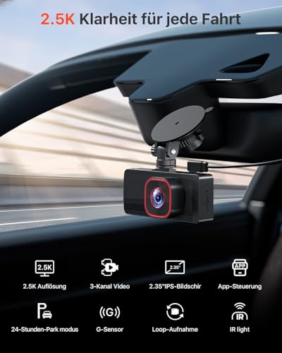 - كاميرا سيارة ثلاثية القنوات مع شاشة IPS مقاس 2.35 بوصة، تسجل بزاوية 170° للكاميرا الأمامية، و150° للكاميرا الداخلية (مع خيار التعطيل)، و150° للكاميرا الخلفية بدقة (2.5K + 1080P + 1080P). مزودة بشاشة ال سي دي مقاس 2.35 بوصة تتيح عرض مختلف زوايا السيارة مباشرة على الشاشة. تسجل الكاميرا في الوقت نفسه فيديوهات للجزء الأمامي والخلفي وداخل السيارة، مما يوفر حماية شاملة لسيارتك.