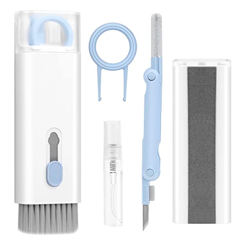 BestSiller - مجموعة فرشاة تنظيف الكيبورد 7 في 1 منظف سماعات الاذن متعدد الوظائف مع اداة سحب غطاء المفاتيح ايربودز والهواتف الذكية ازرق