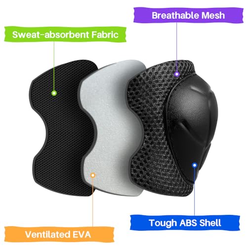 - Premium Hard Shell Protection: Crafted with a high-hardness PVC shell, our kids knee pads and elbow pads set offers robust resistance against scrapes and impacts. The soft sponge padding absorbs shocks, keeping your child comfortable and protected during adventures.