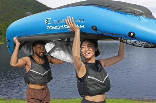 Bestway - مجموعة قوارب الكاياك تشامبيون X2 هايدرو فورس، قابلة للنفخ مع مضخة يدوية ومجاديف ومقاعد وزعانف وشنطة للسعة التخزينية، مقعدين، من بيست واي