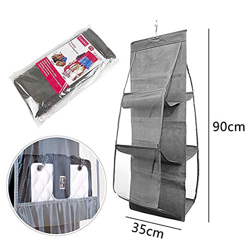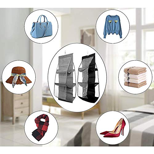 Generic - BESTZY 2 Pcs 6 Pockets hanging closet organizer for Family Closet Purse Handbag Storage Bag BedroomFoldable and Universal (Black&Grey)