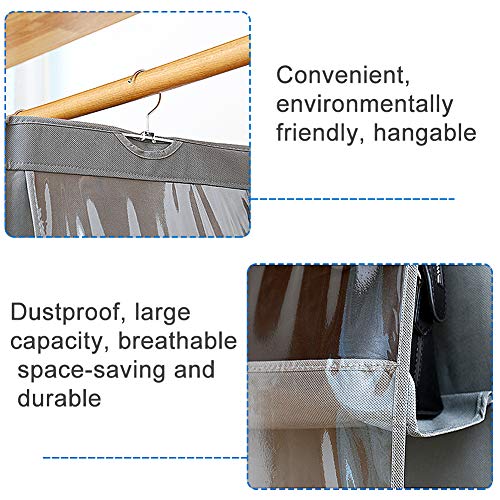 - Durable Material: Double sided hanging closet organizer are made of premium oxford fabric and durable mesh pockets,Hanging Handbag Organizer are made of non-woven fabric and transparent PVC with 12 compartments.