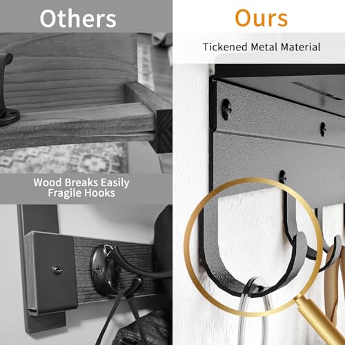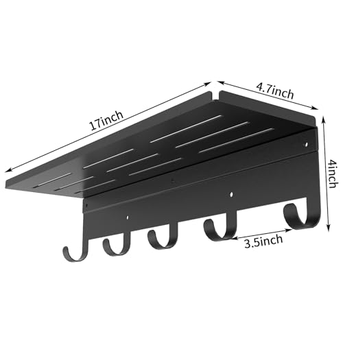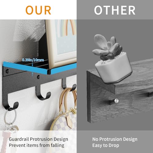 - حواف الدرابزين، تمنع الأشياء من السقوط: رف معطف جداري مع 5 خطافات، تحتوي الصينية المعدنية على حواف درابزين حماية أنيقة بارتفاع 0.4 انش لمنع الأشياء من السقوط بفعالية.