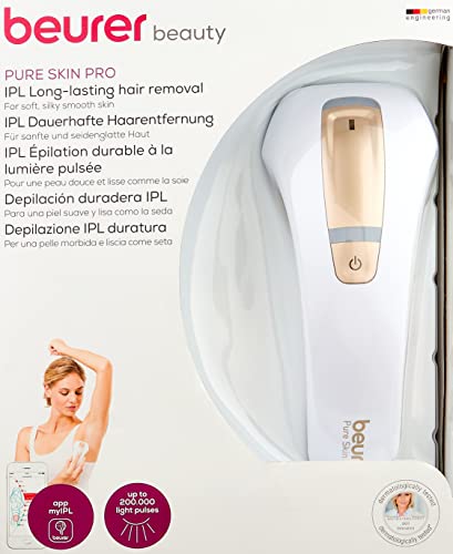 Beurer - جهاز ازالة الشعر بالنبض الضوئي الدائم بيور سكين برو مع وضع الفلاش التلقائي، خضع للاختبار الطبي من بيورير، أبيض