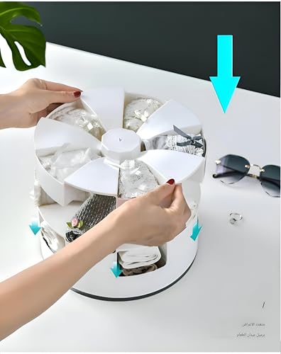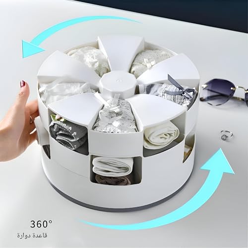 - يتميز هذا المنظم متعدد الاستخدامات بقاعدة دوارة تسمح بسهولة الوصول إلى الجوارب والملابس الداخلية والمرايل والإكسسوارات المخزنة. تصميمها الدائري متعدد الطبقات يجعلها مثالية للتخزين في خزانة الملابس، مما يتيح للمستخدمين استرداد الأشياء بسرعة وبدون عناء بأقل جهد بفضل آلية الدوران السلس.