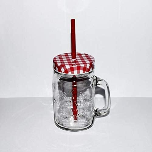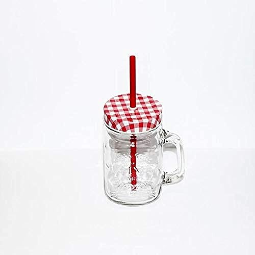 Other - برطمان زجاج ماسون للمشروبات مع شفاطة وغطاء، بلون أحمر، سعة 400 مل