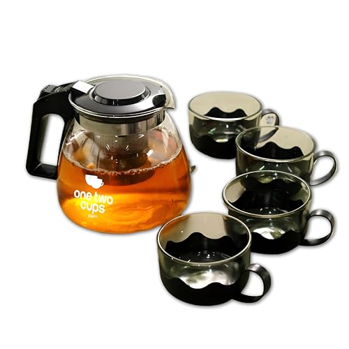 - This glass tea serving set features a glass teapot with a built-in stainless steel filter for straining loose tea as you pour, letting the rich aromas float freely into your cup while keeping tea leaves out of every pour and maintaining a clean presentation on the table.