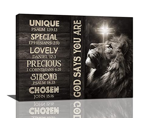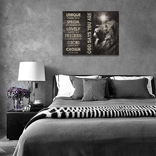 Beynepe - Beynepe Black and White Lion Wall Art Lion of Judah Pictures Wall Decor Christian Bible Verse Painting Inspirational Quotes Canvas Prints Modern Religious Artwork Decoration for Living Room 16"x12"