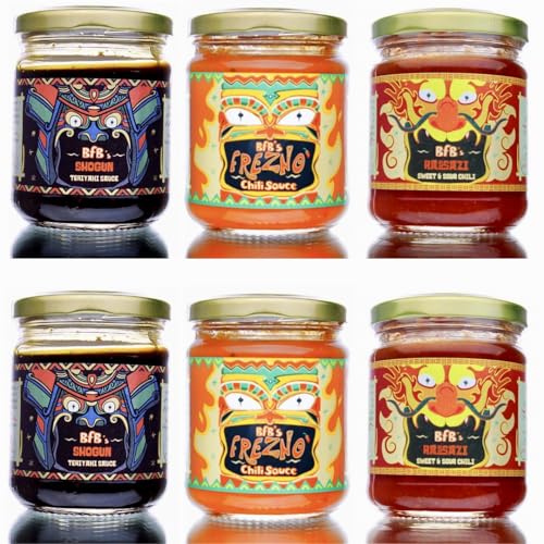 BFB - BfB's Sauce Squad Collection - 6 Pack (2 Rassazi Sweet & Sour Chili, 2 Shogun Teriyaki, 2 Frezno Chili Sauce) 200g/jar