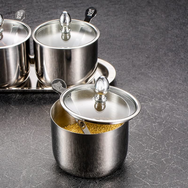 BGGIWY - Stainless Steel Salt Household Kitchen Visual Spice Jars Pepper Sugar Bowl Container Spice Pots