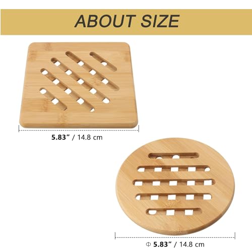 - NATURAL MATERIALS - Natural bamboo trivets, these products are not only sturdy and durable, but also ensure a long service life due to their heat resistance. Natural wood tones add natural beauty to your kitchen or dining table.