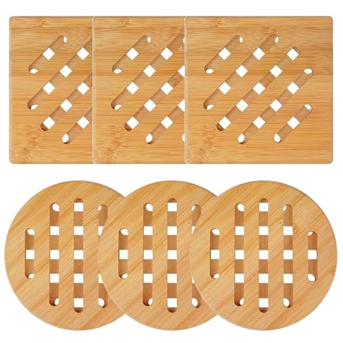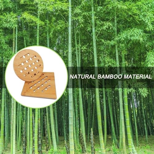 - SET COMBINATIONS - We offer you a set of 6 pieces natural bamboo trivet consisting of 3 small round placemats with a diameter of 14.8 cm and 3 small square placemats with a side 14.8 cm long. This versatile set gives you the flexibility to choose different occasions and uses for all your kitchen and table needs.
