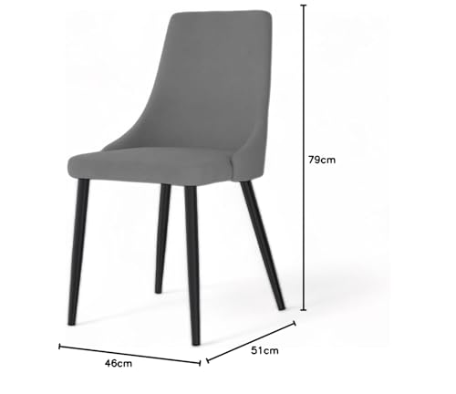 - "Product Dimensions":- Height: (79cm) X Length: (51cm) X Depth: (46cm) | Main Material:- Velvet Upholstery | Seat Depth: 46cm | Height from floor to seat:- 46cm| Leg Material:- Black Metal Powdered Coated Legs | Upholstered:- Yes | Upholstery Material:- Velvet | Leg Construction Type:- Metal | Weight Capacity:- 120 Kgs | Felt Foot Pads:- Yes | Fire Retardant:- Yes | Foldable:- No | Cushioned Back Support | High-resilience foam | Inner solid Metal frame |