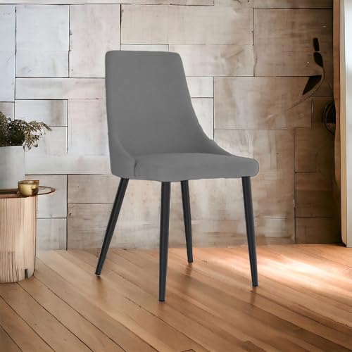 Bhumika Overseas - Taskpro Modern Velvet Upholstered Seating Living Room Dining Chair for Cafeteria, Restaurent, Home, Kitchen with Black Metal Powder Coated Legs in Dark Grey Color