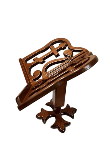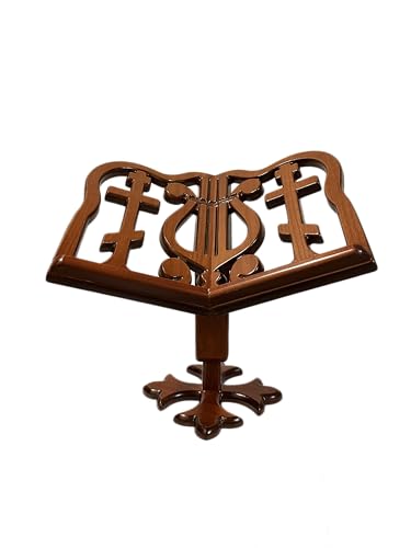 - ELEGANT DESIGN: Traditional wooden book stand featuring an ornate lyre-shaped design with decorative cutouts and a rich brown finish that adds classic charm to any space