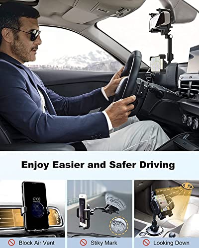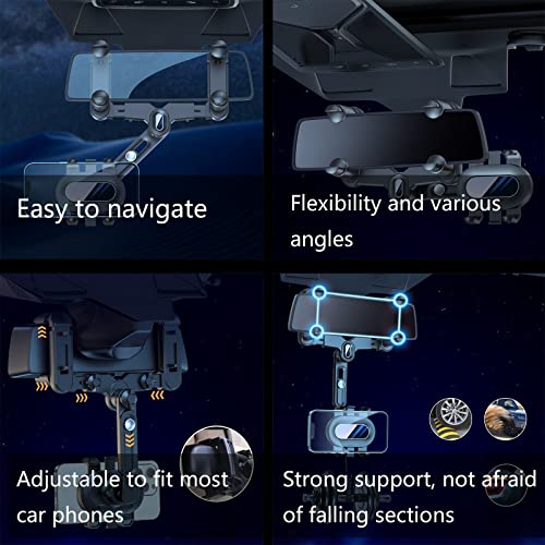 - 【360 Degree Rotation Adjustment】Multifunctional car rear view mirror for phones with 360° horizontal and vertical screen rotation function. You can place your phone in any direction (horizontal, vertical, etc.) and adjust the navigation angle as desired. You can use your phone in all directions by simply moving it.