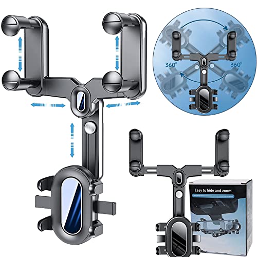 Bibykivn - Mobile Phone Holder Car Rear View Mirror, 360° Rotatable and Retractable Mobile Phone Holder, Universal Rear-View Mirror Mobile Phone Holder, for GPS Holder, 4-7 Inch Mobile P