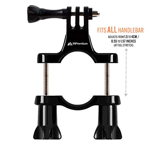 - Heavy duty durable mount: you need a mount that does not break during your thrilling rides. Made of heavy duty plastic and packaged with a stainless steel rustproof thumbscrew, perfect for outdoor use in all weather conditions. MiPremium handlebar mount fits 0.59” to 1.57” (15mm to 40mm) diameter tubes – making it a perfect mount for GoPro & other action cameras.