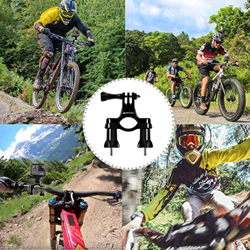 MiPremium - Bicycle Bike Handlebar Mount Adapter for GoPro Hero 13 12 11 10 9 8 7 6 5 4 3 2 1 + Fusion Session Black Silver EK7000 Sjcam Seatpost Pole Clamp + 3 Way Adjustable Pivot Arm for Action Cameras