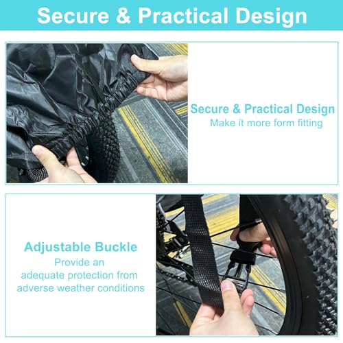 - Firmly attached: the bicycle rain cover is equipped with lower compression straps and fixed buckles to ensure that the bicycle cover can cover your bike firmly without worrying about it being blown away in strong winds. This design protects your bike at all times, no matter what the weather is outside.
