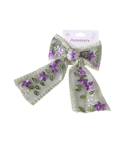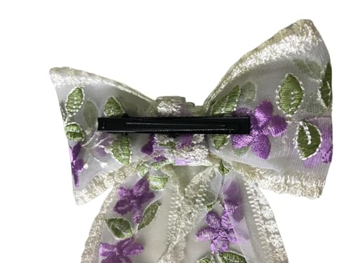 Generic - Big Bow Hair Clip - Tulle and Jeans Embellished Beak - Fashion Accessory Adds a Touch of Luxury to Your Look Designed for Easy to Wear (White Board Mauve)