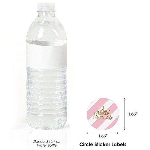 Big Dot of Happiness - ستيكر لاصق دائري بطبعة «Princess» وتاج صغير، لحفلات اعياد الميلاد او السبوع، لون بينك وذهبي- 24 قطعة، من بيج دوت اوف هابينس
