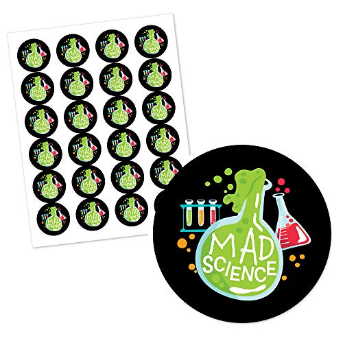 Big Dot of Happiness - ستيكر لاصق دائري بتصميم اغراض مختبر بعبارة «Mad Science» من بيج دوت اوف هابينس مناسب لحفل السبوع او حفل عيد الميلاد، 24 قطعة