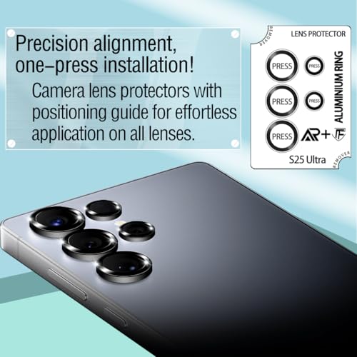 BIGFACE - واقي عدسة كاميرا مصنوع من الزجاج المقوى بدرجة صلابة 9 والمعدن ومتين ومضاد للخدش وبشفافية واضحة HD ويناسب التصوير الليلي لموبايل جالاكسي S25 الترا من بيج فيس (أسود)