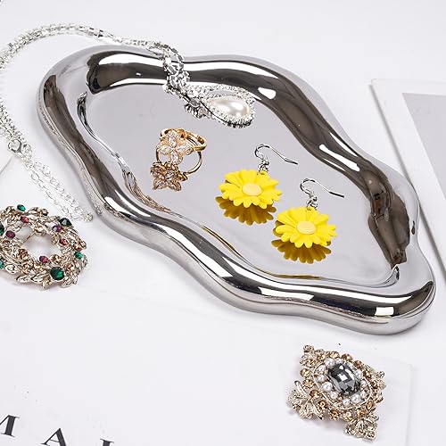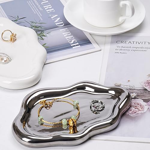 BIGPIPI - Ceramic Jewelry Tray for Ring Key Jewelry Cute Cloud Shape Decorative Jewelry Holder Room Decor Aesthetic Gift (Silver)