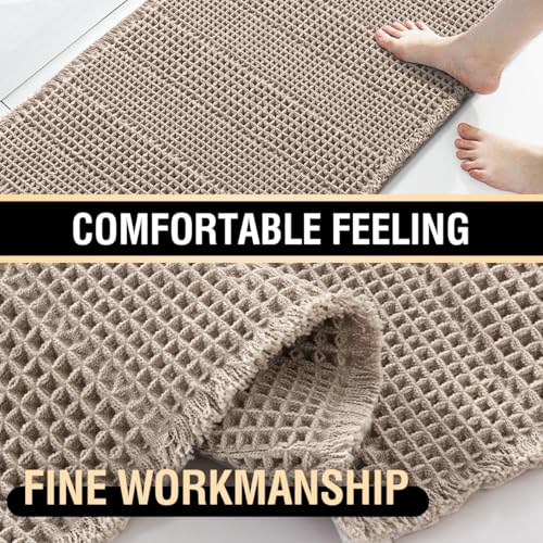 BIGTHREE - دواسات حمام غير قابل للانزلاق بتصميم وافل، بساط حمام ماص، سجاد حمام غير قابل للانزلاق لأرضية الحمام قابل للغسل في الغسالة، سجاد حمام سريع الجفاف لجانب حوض الاستحمام من بيجثري 43 × 61 سم