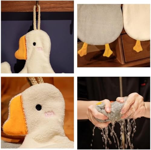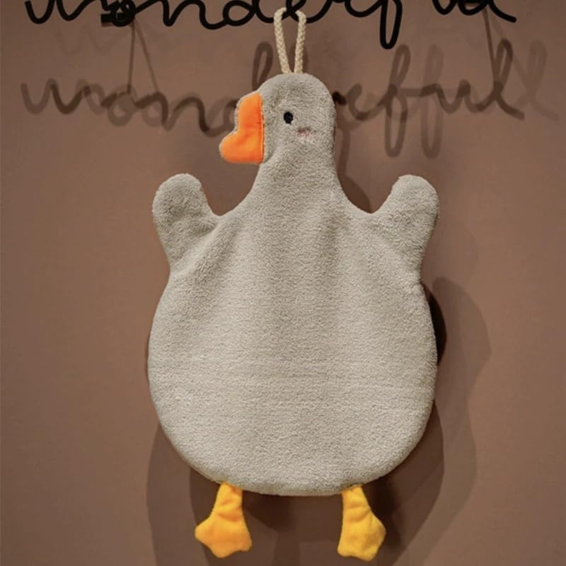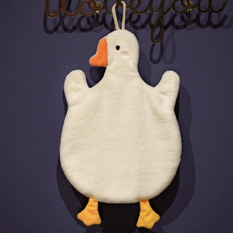 BIGTHREE - BIGTHREE Cute Goose Hand Towels, 2 Pcs Hanging Towel with Hanging Loop, Absorbent Thick Microfiber Hand Towel Soft Quick-Drying, Cartoon Animal Kids Hand Towel Kitchen Bathroom
