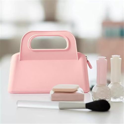 BIGTHREE - BIGTHREE Travel Makeup Bag, Silicone Waterproof Travel Cosmetic Organizer with Zipper & Handle for Women, Perfect for Women’s Skincare, Holidays & Airplane Essentials (Pink)
