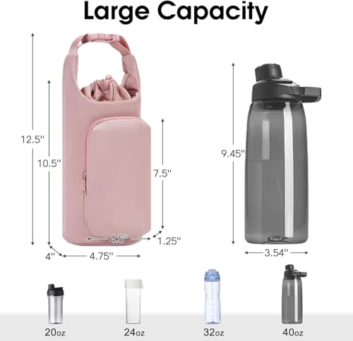 BIGTHREE - BIGTHREE Water Bottle Carrier Bag with Phone Pocket, Water Bottle Storage Bag, 32oz 40oz Tumbler Insulated Water Bottle Holder, Adjustable Shoulder Strap, Suitable for Sports, Pink.
