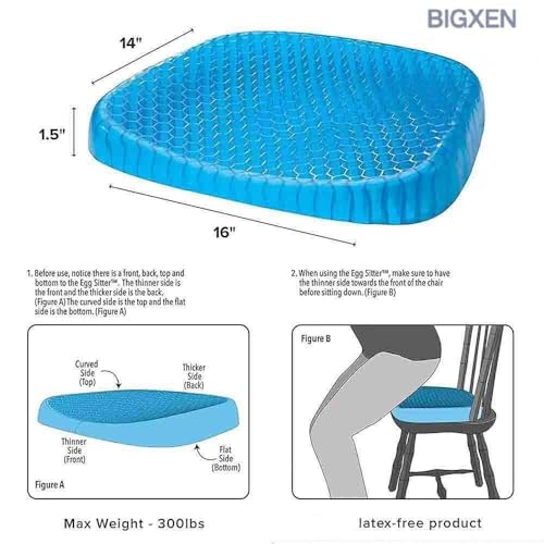 BIGXEN - BIGXEN Egg Gel Seat Cushion, Breathable Gel Cushion Chair Pads with Non-Slip Cover for Home Office Car Wheelchair, Honeycomb Design As Seen On TV-1PCS