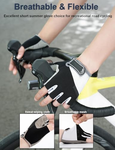 - 🌬️【Breathable & Flexible Design】Crafted with moisture-wicking, 4-way stretchable athletic nylon, these cycling gloves keep your hands well-ventilated and dry during rides. Ideal for summer cycling, they provide the ideal balance of breathability and flexibility, ensuring a comfortable experience for both casual and professional cyclists.
