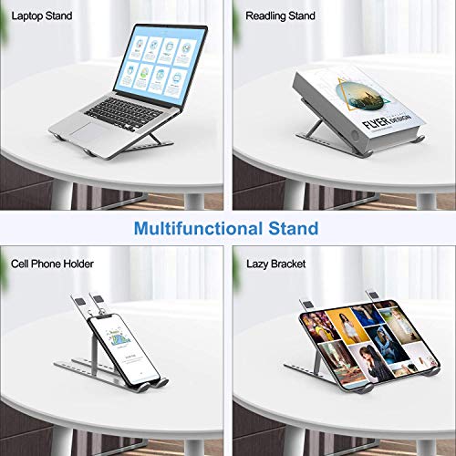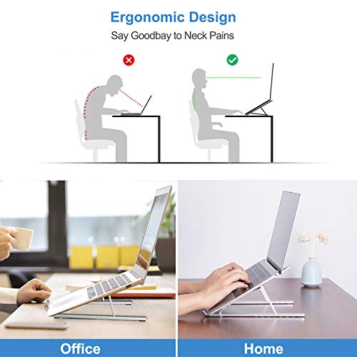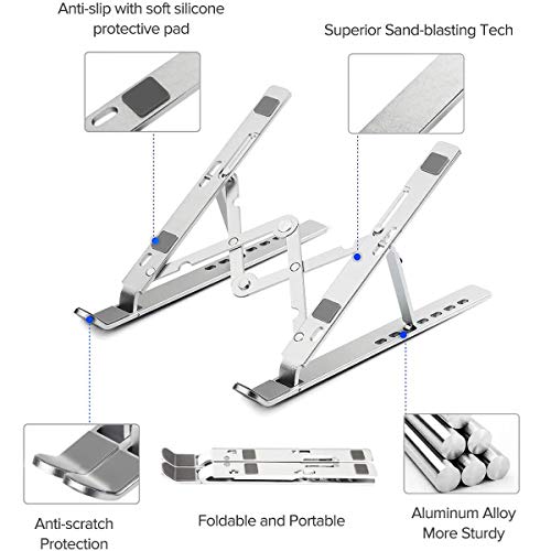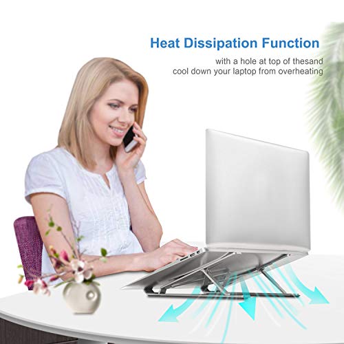 Bikien - Adjustable, Portable Aluminum Laptop Riser Holder for MacBook Air, MacBook Pro, HP, Dell, Lenovo More (Up to 15.6in, Silver)