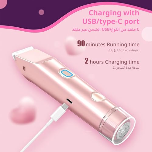 Oasisgalore - Bikini Trimmer For Women,Electric Shaver Body Trimmer For Men Pubic Hair, Hair Trimmer Shaver Razors 2-In-1 Wet & Dry Waterproof Shaving Machine For Women(Pink)