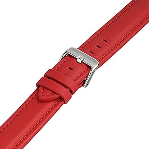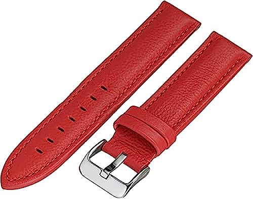 Bikson - Smooth Leather Band with Black Buckle for Samsung Galaxy Watch 46mm / Huawei GT2 / Gear S3 Frontier and Classic / Honor Magic 2 / Fossil Smart Watch Elite Strap - 22mm - Brilliant Red