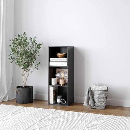 Generic - BIKYA Tier Wooden Bookcase Shelving Display Storage Shelf Unit Wood Shelves (Black, 3 Shelf)