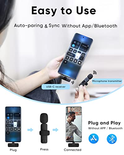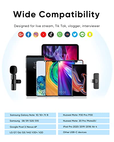 Bilivein - Wireless Lavalier Lapel Microphone for Android Mini Mic with Clip Plug-Play Auto Sync Noise-Cancelling Mic