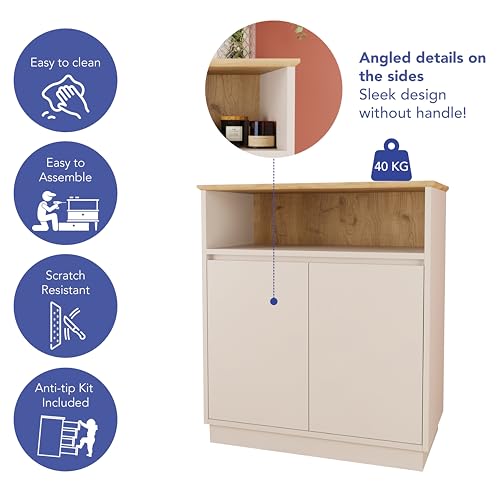 - Durable Build: Constructed from 18 mm thick E1 quality chipboard, ensuring our sideboard is both sturdy and functional, capable of withstanding daily use.