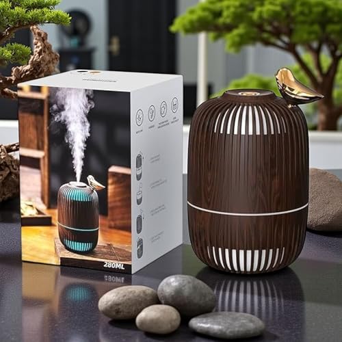 Generic - مرطب هواء بتصميم قفص الطيور بضوء ليد ملون وتشغيل صامت أقل من 30 ديسيبل ووضعان للرذاذ بمدة التشغيل 4-8 ساعات