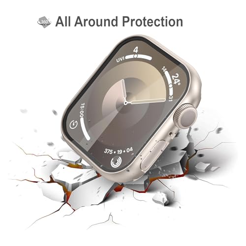- 【الموديل المتوافق】: متوافق مع ساعة ابل سلسلة 9 45 ملم/ سلسلة 8 45 ملم/ سلسلة 7 45 ملم، وليس للموديلات الأخرى. يرجى اختيار المقاس الصحيح لساعتك. ملاحظة: هذا الغطاء مع طبقة واقية مدمجة ليست مقاومة للماء، ويوصى بشدة بإزالته عند السباحة، وإلا سيتم حبس الماء تحت الغطاء.