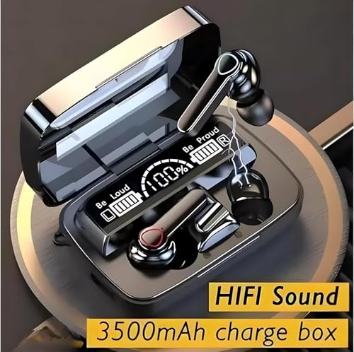 Birla Mobile hub - Wireless Bluetooth 5.1 Earbuds, 9D HiFi Sound, 3500mAh Charging Case, IPX7 Waterproof, Touch Control, LED Display | Black