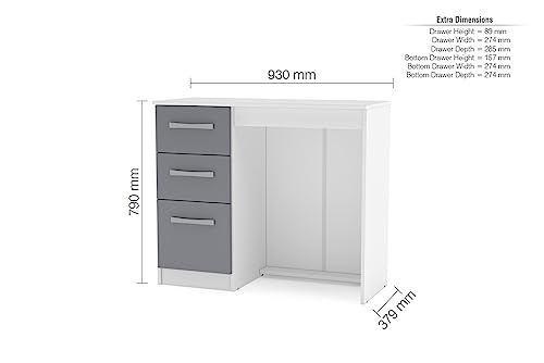 Birlea - Birlea Lynx 3 Drawer Dressing Table High Gloss, White and Grey