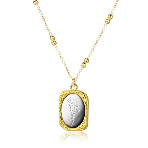 Generic - Birth month flower pendant necklace - a thin silver-plated stainless steel chain with a square flower pendant, perfect for celebrating Christmas and everyday elegance.