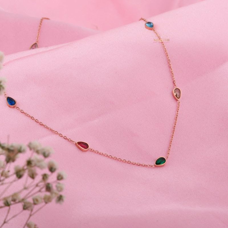 Generic - birthstone necklace, stone necklace by the yard for women, delicate bezel setting, perfect Christmas or Mother's Day gift for mom or grandma