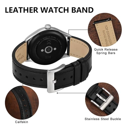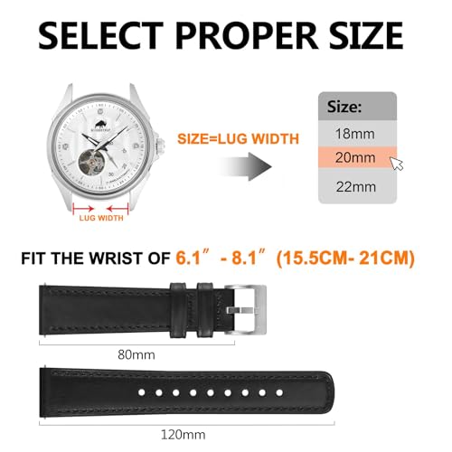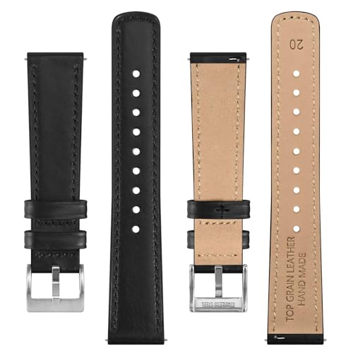 BISONSTRAP - سوار ساعة من الجلد من بيسون ستراب، سوار جلد كلاسيك مشمع بالزيت، سوار بديل سريع الفك للرجال والنساء، عرض السوار 18 ملم و20 ملم و22 ملم