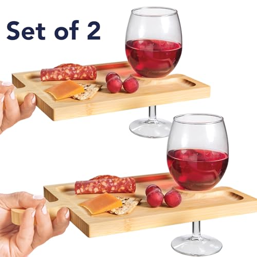 - Set of 2 Wood Serving Boards: Versatile interlocking bamboo boards can be cleverly pieced together for a stylish charcuterie or cheese board, or used separately for guests to hold their wine and appetizers.