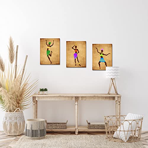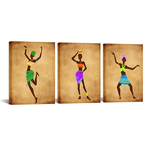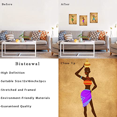 Biuteawal - Biuteawal 3 Piece African American Wall Art Indian Woman Decor Photo Paintings Abstract Decorative Picture Retro Artwork for Home Bedroom Bathroom Decor Framed Ready to Hang